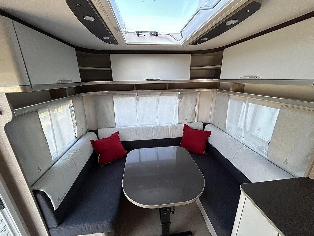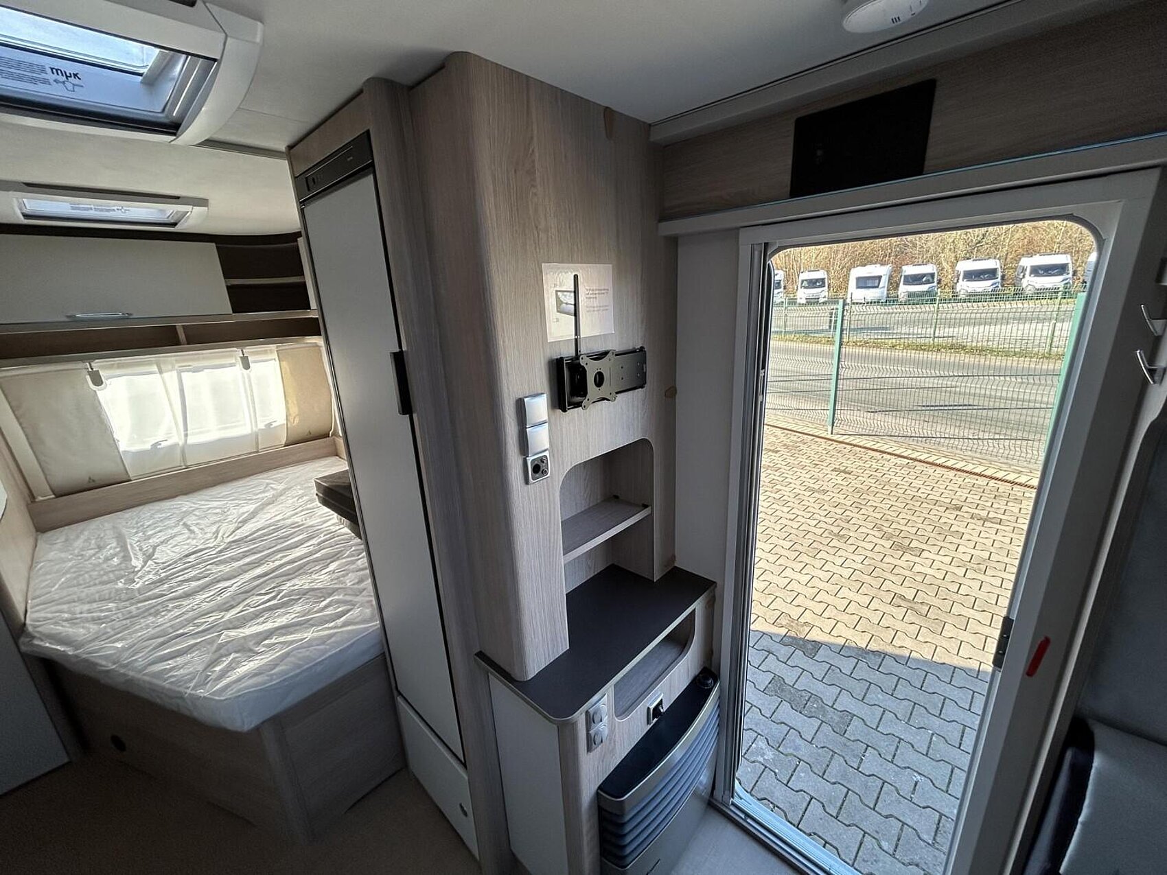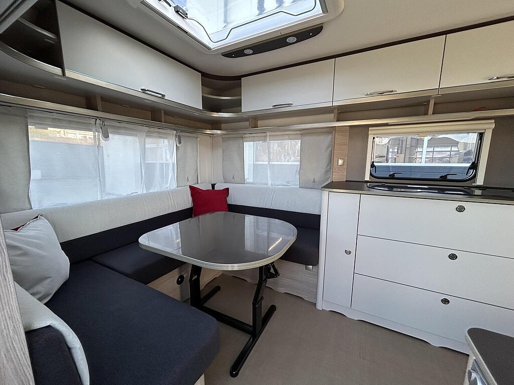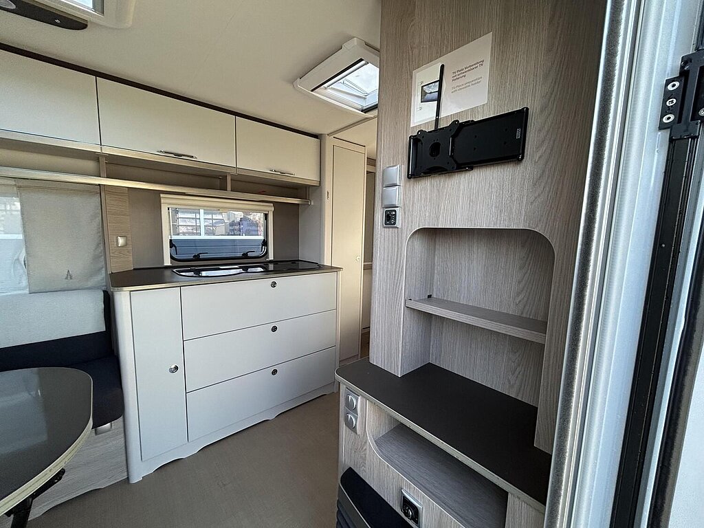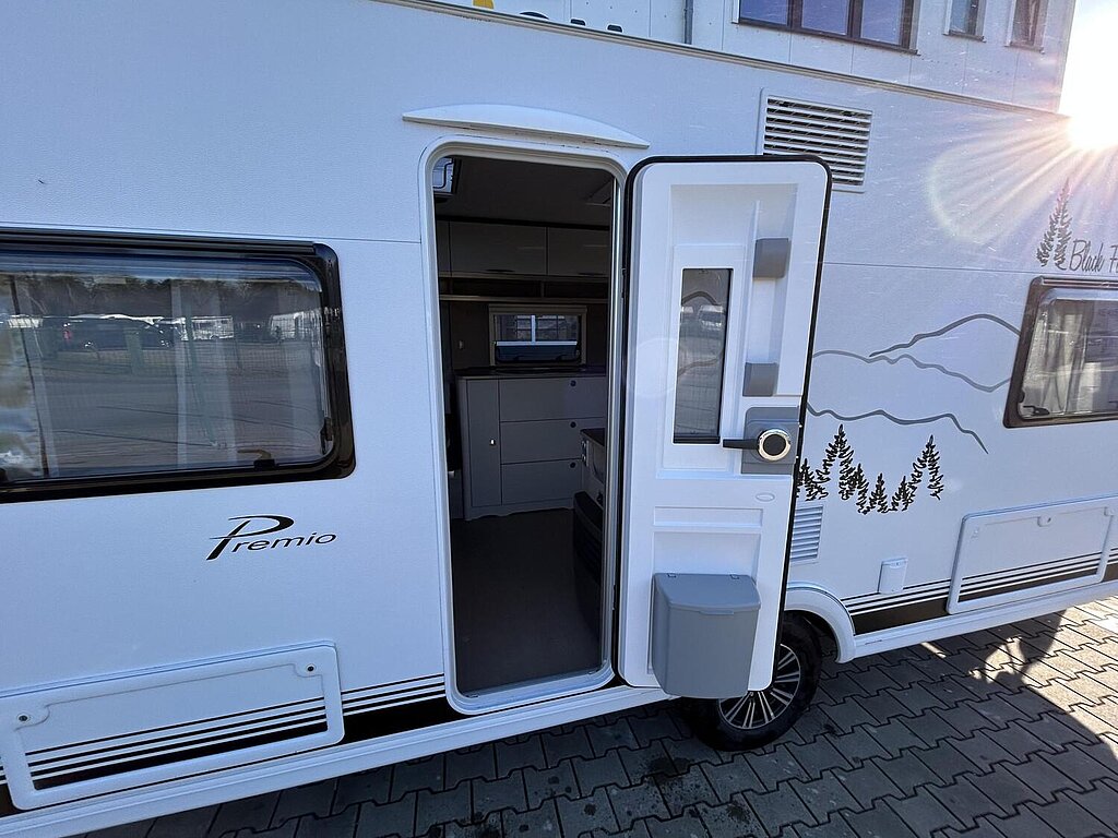 - Premio Paket 2 (Umluftanlage 230 V, Dachfenster 96 x 65 cm anstelle Dachhaube 40 x 40 cm, Fliegenschutz für Eingangstür, Elektrischer Warmwasseraufbereiter mit 5 l Wasserinhalt, 300 W, Indirekte Beleuchtung Oberschränke, Aufbautür einteilig mit Fenster und Abfallsammler)