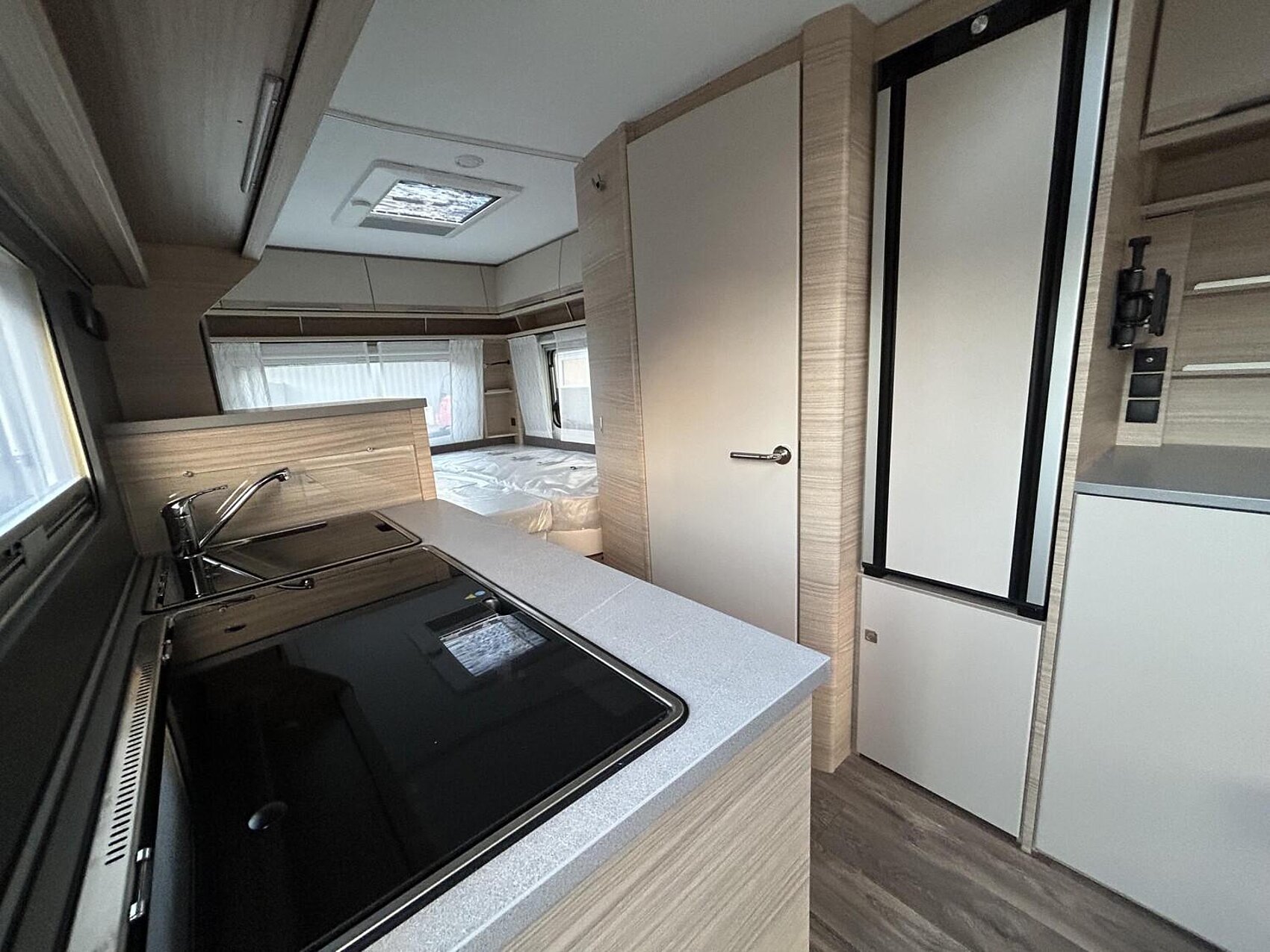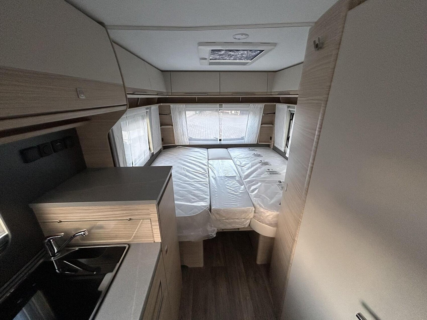 MIDI-Dachhaube (Dometic) mit Kurbel, Zwangsentlüftung, Verdunkelungs- und Fliegenrollo