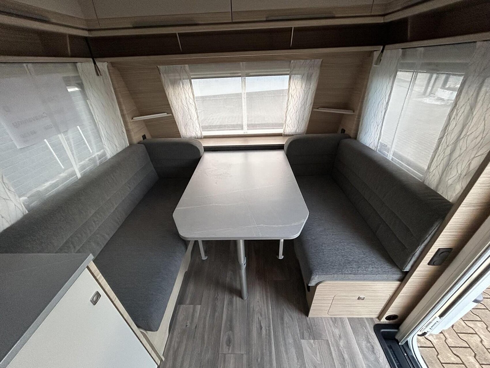 Doppelt verglaste, getönte Ausstellfenster mit Fliegen- und Verdunkelungsrollo