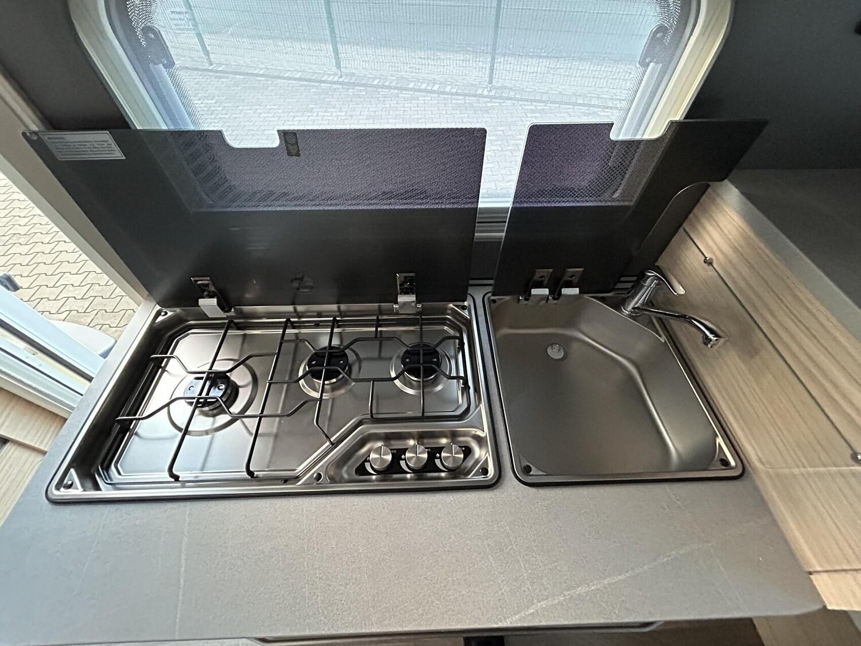 3-flammiger Kocher mit Zündsicherung und Glasabdeckung