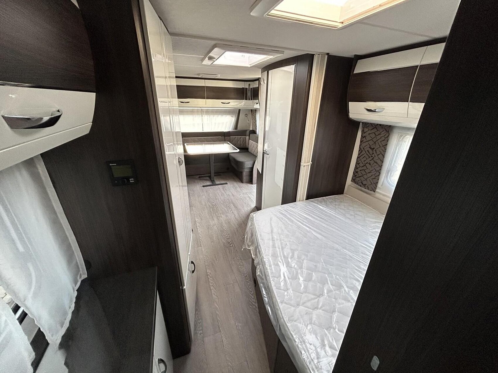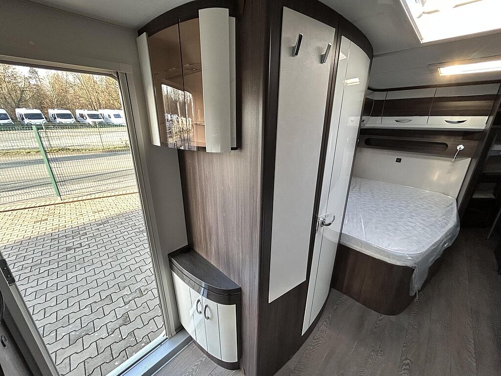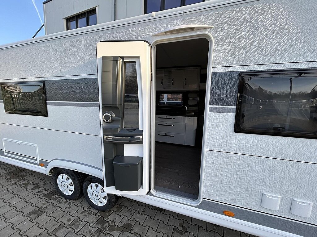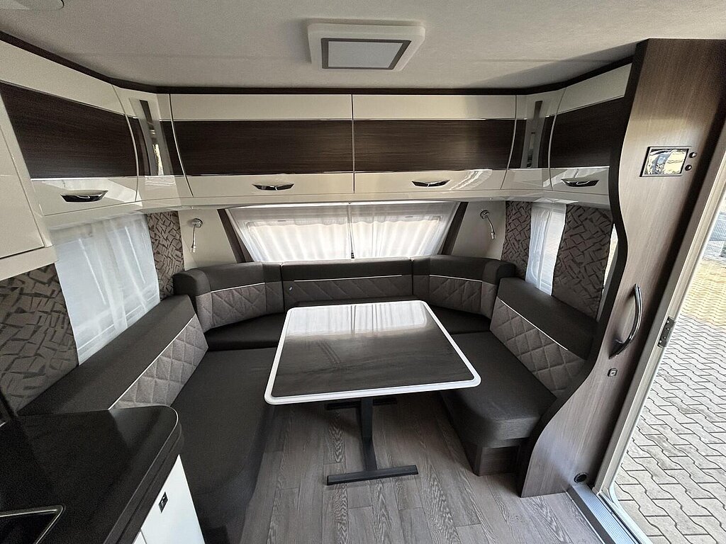 - Winterbelüftung für Sitzgruppe, Stauschränke und Betten, Eingangstür einteilig, extrabreit mit Dreifachverriegelung, Fenster