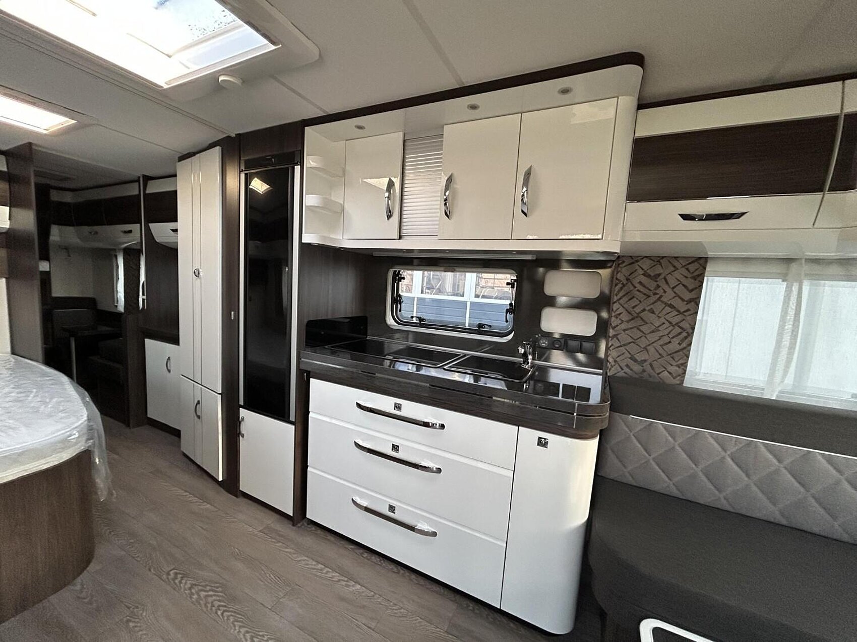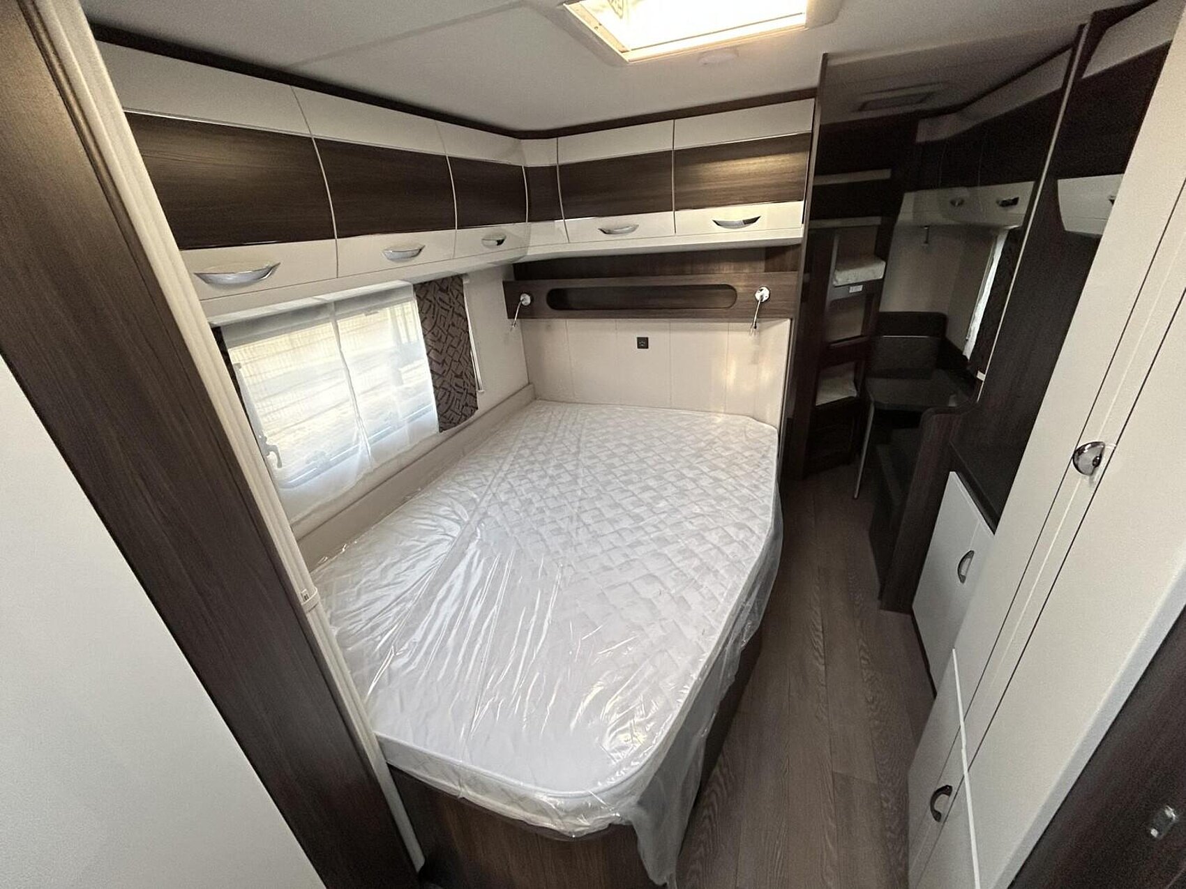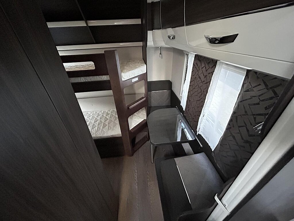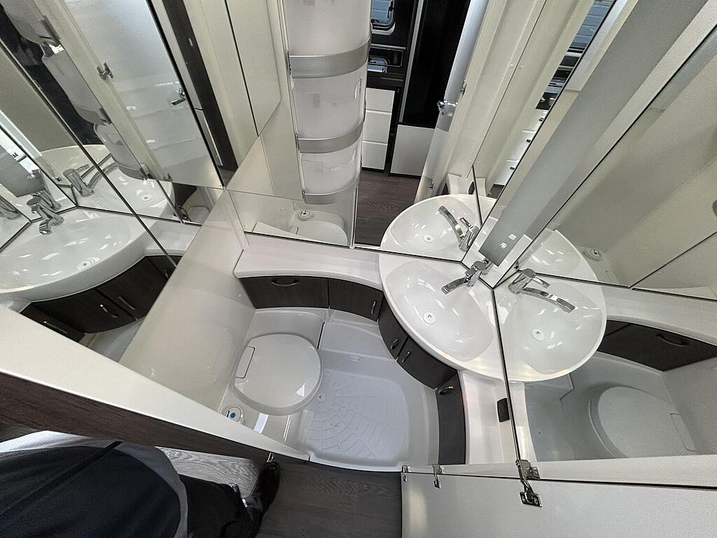 - Winterbelüftung für Sitzgruppe, Stauschränke und Betten, Eingangstür einteilig, extrabreit mit Dreifachverriegelung, Fenster